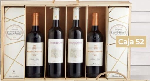 La caja de vino de madera de Navipack es una selección excepcional de vinos de alta calidad de diferentes regiones vitivinícolas españolas y francesas.