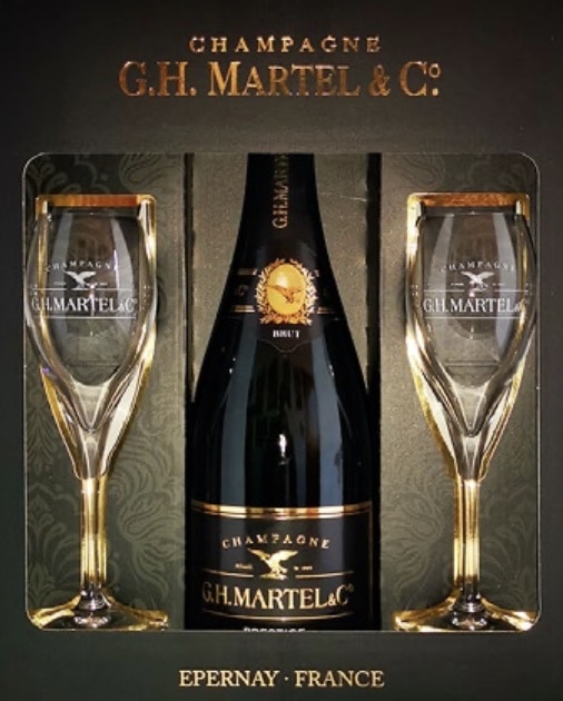 1 Pack de champagne MARTEL Prestige más 2 copas